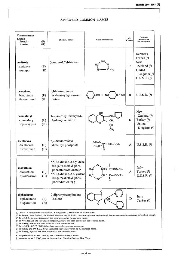 The IS0 Recommendation R 290, Common Names for Pesticides-Fourth List, was drawn