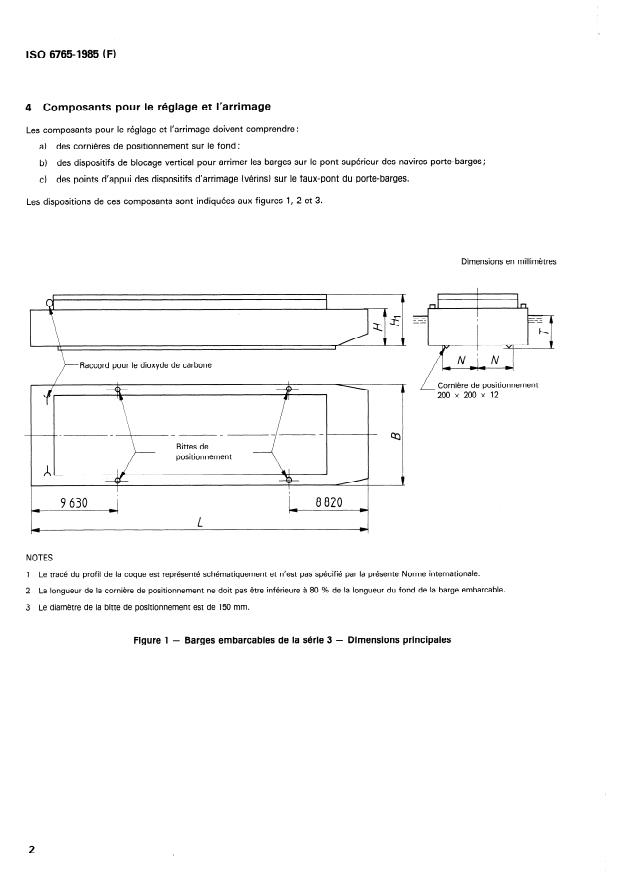 Les dimensions principales des barges embarcables de la série 3 doivent être conformes au tableau 1 (voir figure 1).