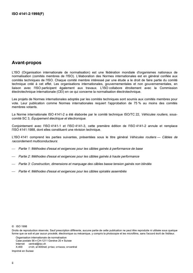 L'ISO 4141 comprend les parties suivantes, présentées sous le titre général Véhicules routiers — Câbles de
