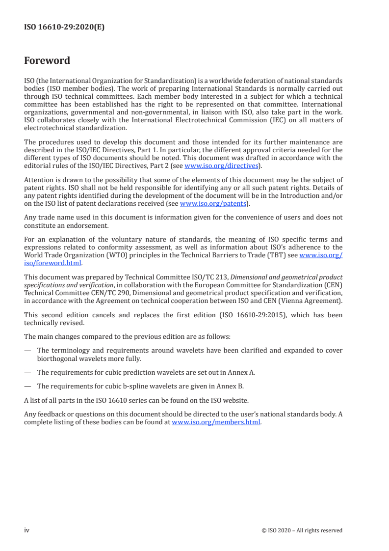 ISO 16610-29:2020 is a standard published by the International Organization for Standardization (ISO). Its full title is "Geometrical product specifications (GPS) - Filtration - Part 29: Linear profile filters: wavelets". This standard covers: This document specifies biorthogonal wavelets for profiles and contains the relevant concepts. It gives the basic terminology for biorthogonal wavelets of compact support, together with their usage.