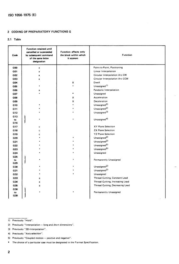 formats - Coding of preparatory functions G and