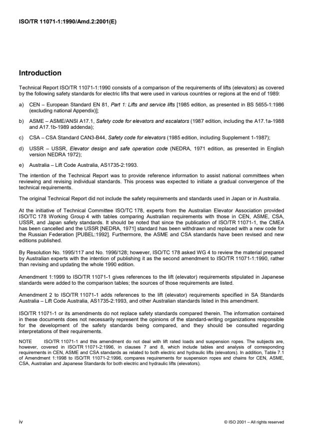 Comparison of worldwide lift safety standards — Part 1: Electric lifts (elevators) — Amendment 2: References to Australian standards