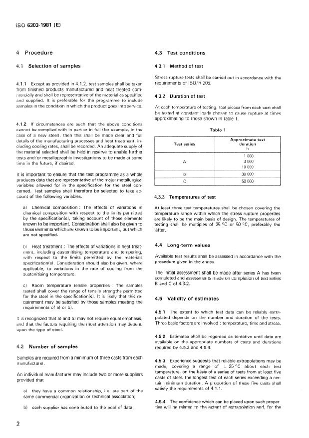 The standard defines criteria for:- The minimum number of steel casts and test durations required for valid extrapolation