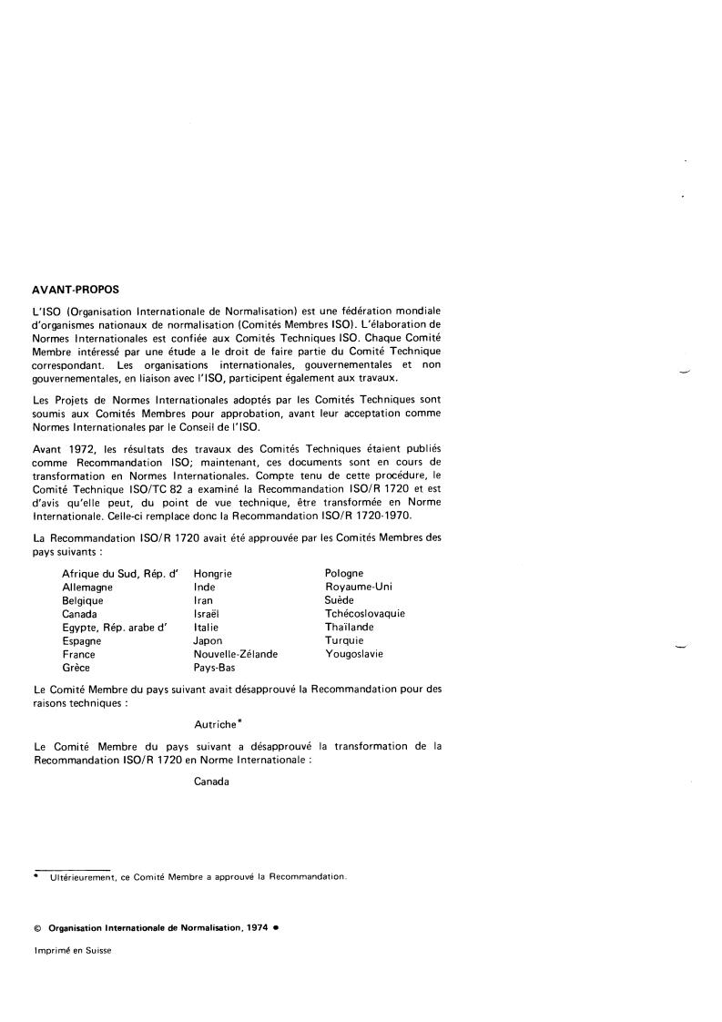 Comité Technique ISO/TC 82 a examiné la Recommandation ISO/R 1720 et est