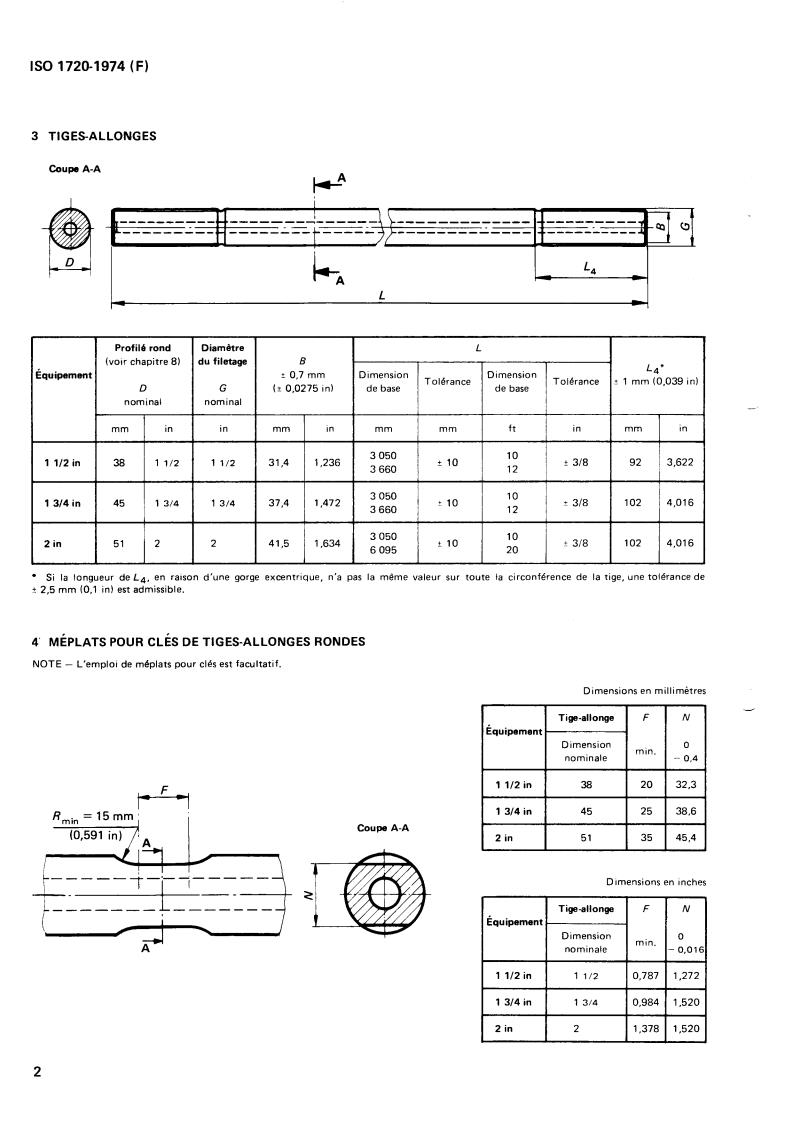 ISO 1720:1974 - Rock drilling — Extension drill-steel equipment for percussive long-hole drilling — Rope-threaded equipments 1 1/2 to 2 in (38 to 51 mm) Released:7/1/1974