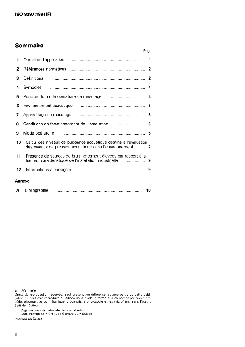ISO 8297:1994 is a standard published by the International Organization for Standardization (ISO). Its full title is "Acoustics - Determination of sound power levels of multisource industrial plants for evaluation of sound pressure levels in the environment - Engineering method". This standard covers: Specifies an engineering method for determining the sound power levels of large multisource industrial plants relevant to the evaluation of sound pressure levels in the environment. The method is limited to large industrial plants with multiple noise sources having their main dimensions in the horizontal plane, and which radiate sound substantially uniformly in all horizontal directions. Unweighted sound pressure levels are measured in octave bands. The results obtained are expressed both in octave-band and, if required, in A-weighted sound power levels.