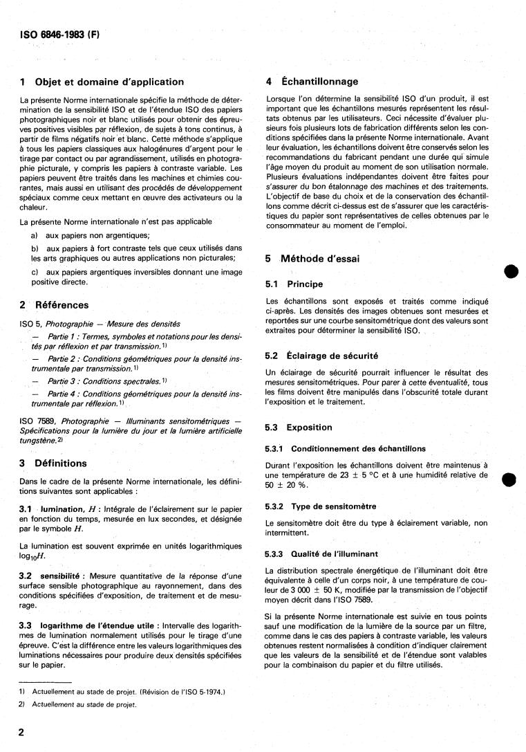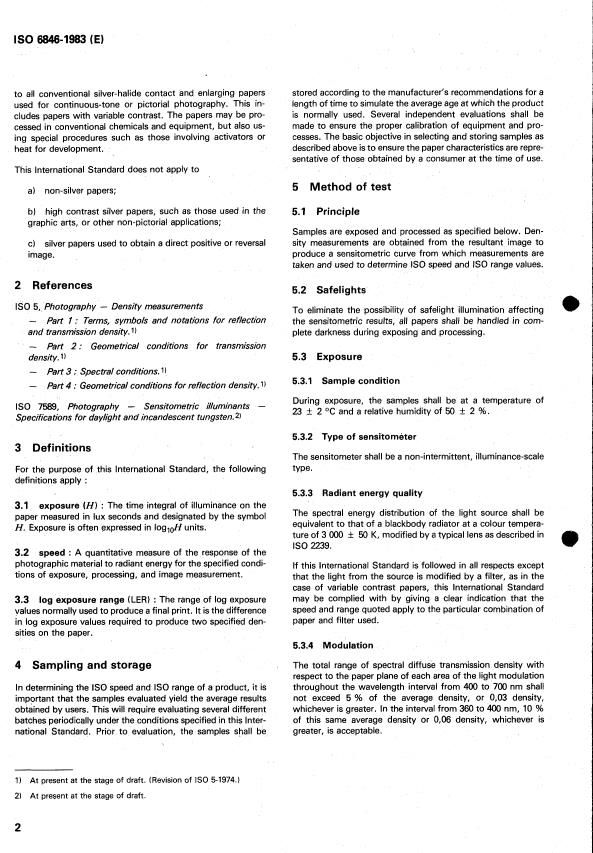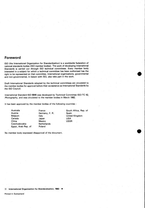 ISO 6846:1983 - Photography — Black-and-white continuous-tone papers — Determination of ISO speed and range for printing Released:12/1/1983