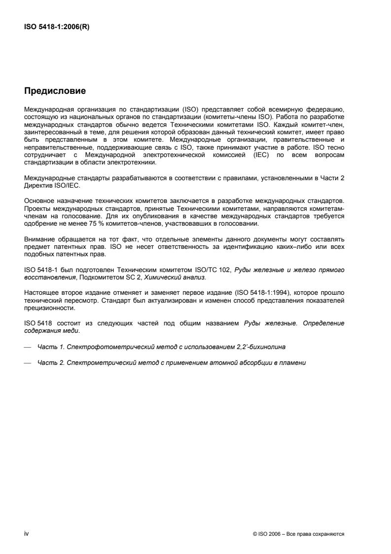 Keywords: ISO 5418-1:2006, iron ores, copper determination, 2,2′-biquinolyl, spectrophotometric method, ore analysis, analytical chemistry, laboratory procedure.