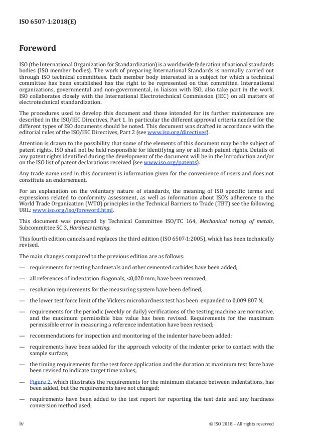 ISO 6507-1:2018 is a standard published by the International Organization for Standardization (ISO). Its full title is "Metallic materials — Vickers hardness test — Part 1: Test method". This standard covers: ISO 6507-1:2018 specifies the Vickers hardness test method for the three different ranges of test force for metallic materials including hardmetals and other cemented carbides.