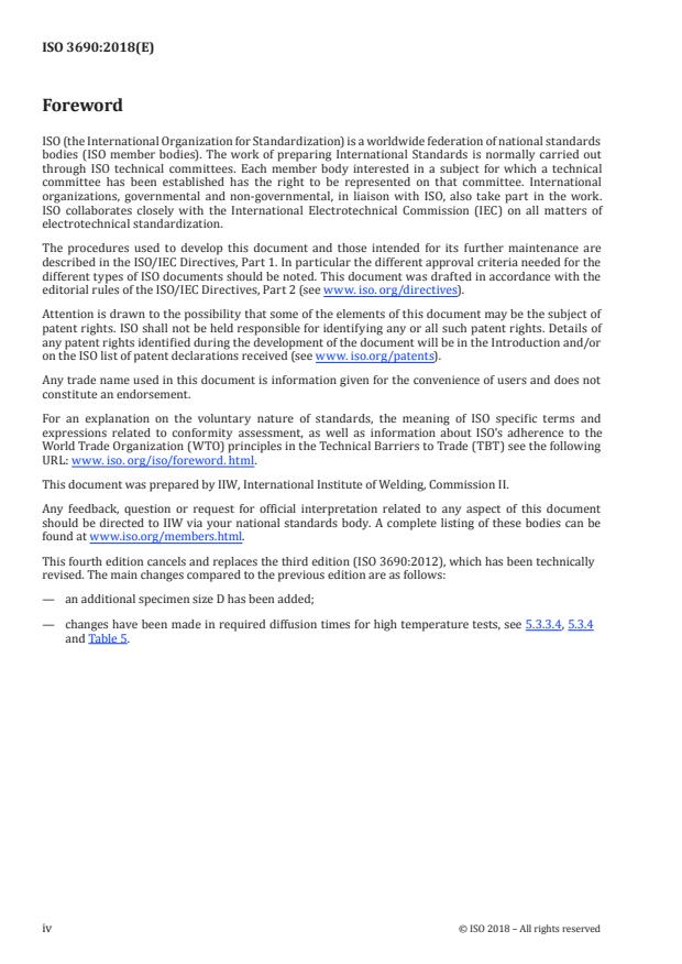 - Notes: ISO 3690:2018 was prepared by the International Institute of Welding (IIW) and includes cross‑references to historical methods (glycerine/mercury) for comparison purposes.
