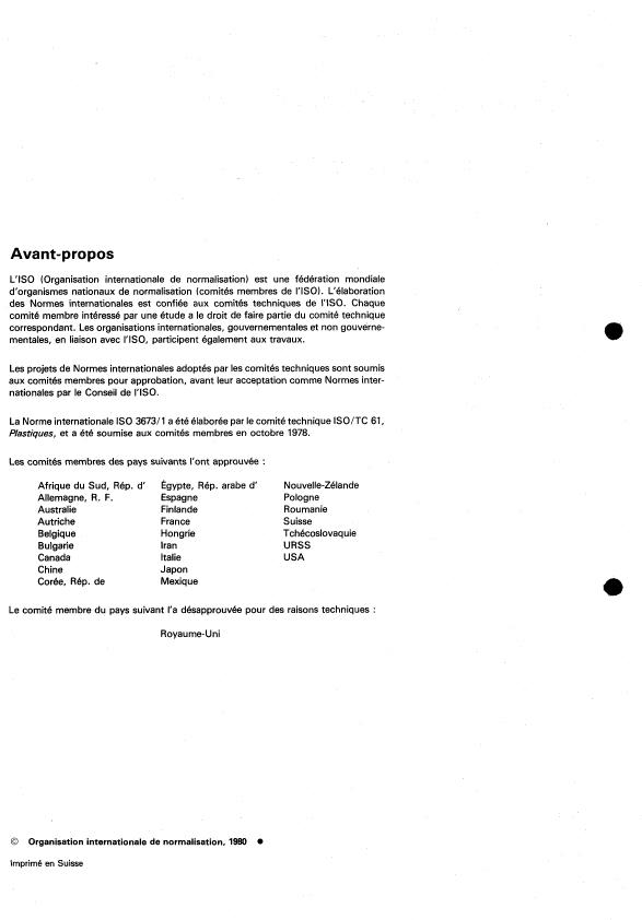 La Norme internationale IS0 3673/1 a été élaborée par le comité technique ISO/TC 61,