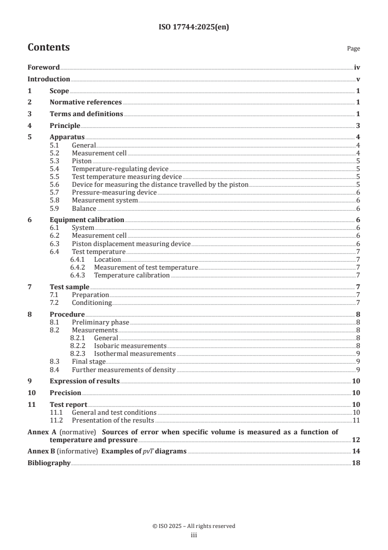 ISO 17744:2025 - Plastics: Determination of specific volume as a function of temperature and pressure, pvT diagram - Piston apparatus method specifies a laboratory method to measure the specific volume (and hence density) of plastics across ranges of temperature and pressure using a piston-equipped measurement cell. The standard defines procedures for both the molten and solid states and produces pvT diagrams that relate pressure (p), specific volume (v) and temperature (T). Results include volumetric compressibility and thermal-expansion coefficients and information on first-order and glass transitions as functions of T and p.