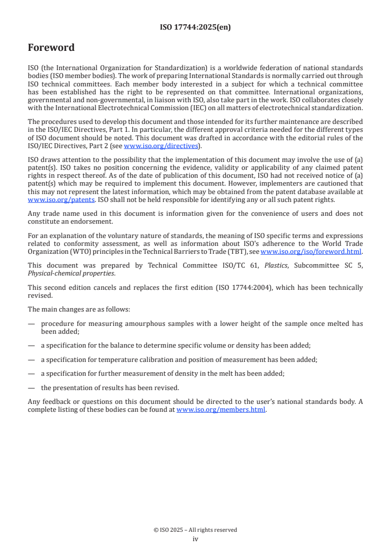 - ISO 17744:2025 is the second edition (revising ISO 17744:2004) with updated procedures for amorphous samples, balance and temperature calibration requirements, and result presentation.