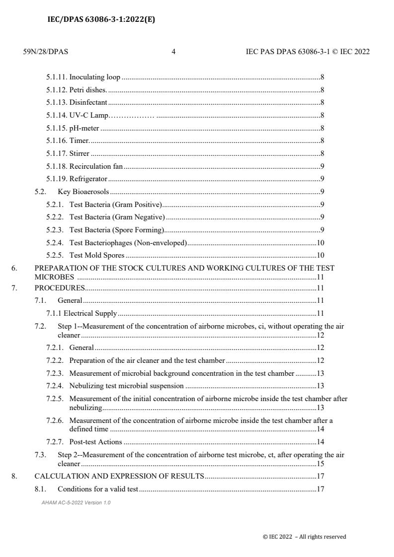 IEC/DPAS 63086-3-1 - Household and similar electrical air cleaning appliances — Methods for measuring the performance — Part 3-1: Particular requirements for reduction of microorganisms Released:21. 12. 2022