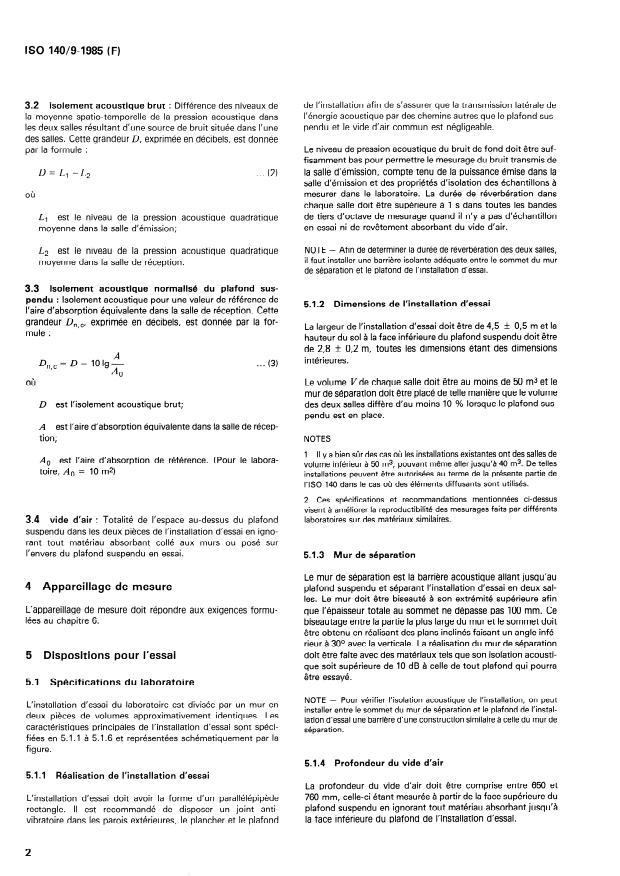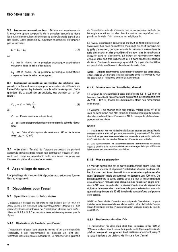 D est l’isolement acoustique brut; des deux salles diffère d’au moins 10 % lorsque le plafond sus-