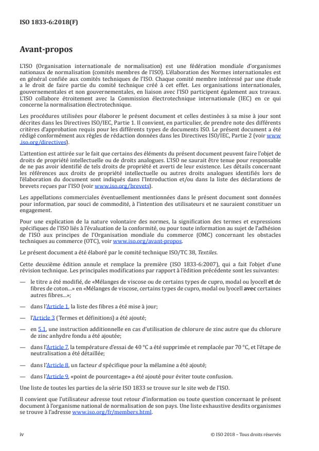 Cette deuxième édition annule et remplace la première (ISO 1833-6:2007), qui a fait l’objet d’une