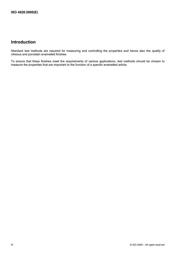 ISO 4528:2000 - Vitreous and porcelain enamel finishes -- Selection of test methods for vitreous and porcelain enamelled areas of articles