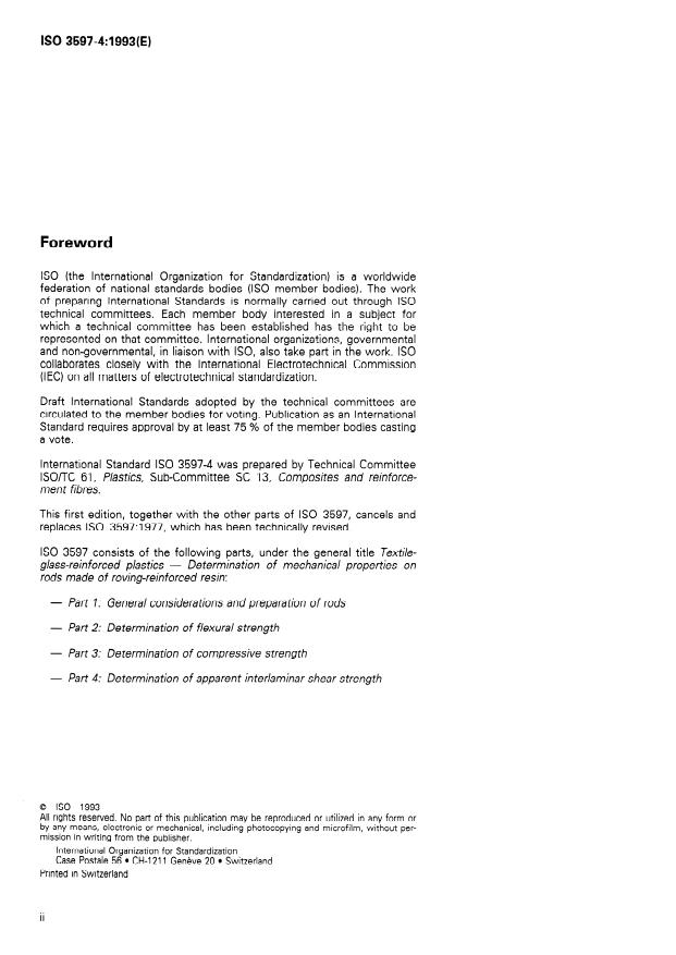 ISO 3597-4:1993 - Textile-glass-reinforced plastics -- Determination of mechanical properties on rods made of roving-reinforced resin
