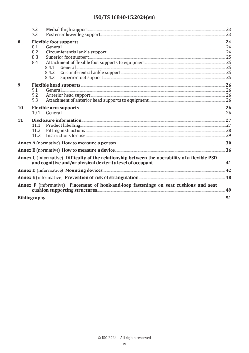 Keywords: ISO/TS 16840-15:2024, wheelchair seating, flexible postural support devices, selection placement fixation, postural positioning, pelvic support, trunk supports, seating safety.