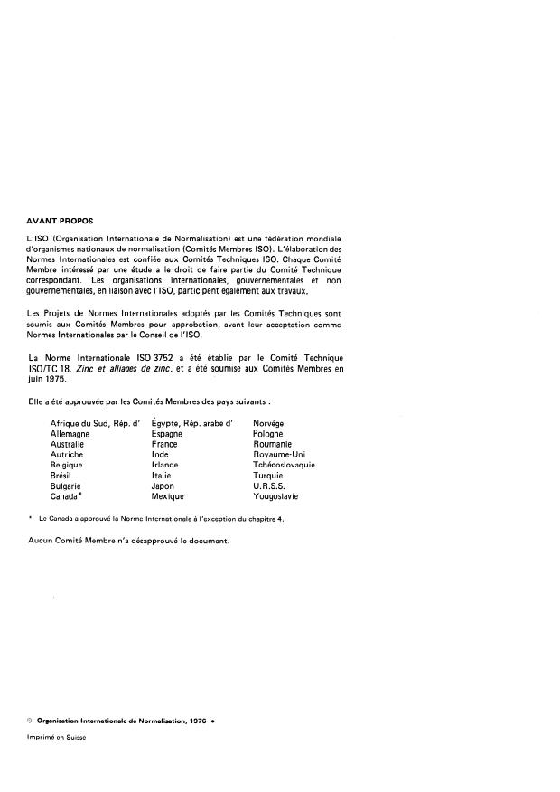 ISO/TC 18, Zinc and zinc aioys, and was circulated to the Member Bodies in