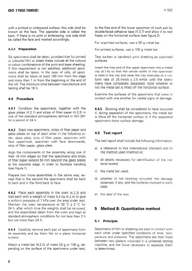 ISO 11502:1995 - Plastics -- Film and sheeting -- Determination of blocking resistance