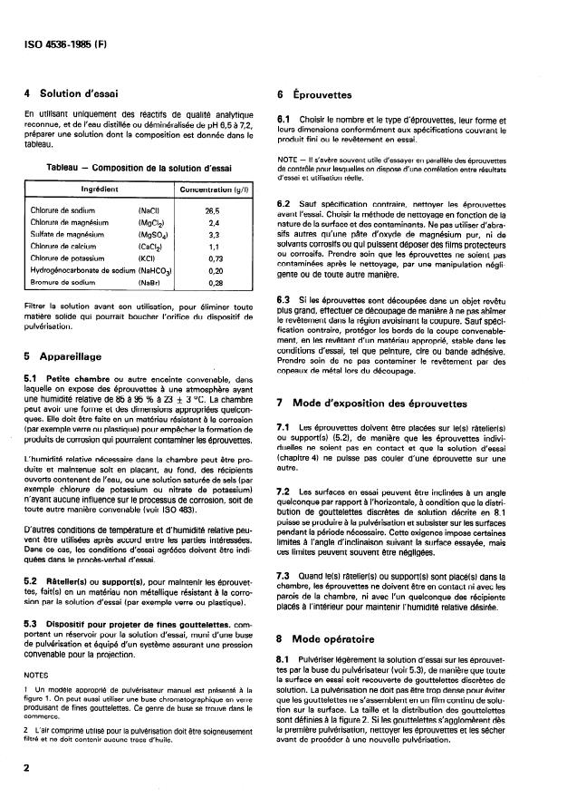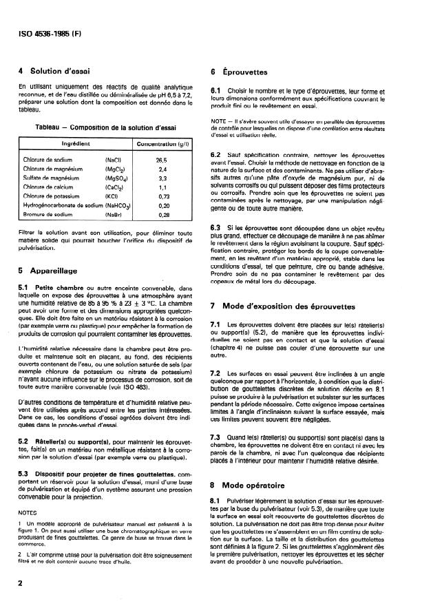 ISO 4536:1985 - Revetements métalliques et non organiques sur bases métalliques -- Essai de corrosion aux gouttelettes salines (Essai SD)