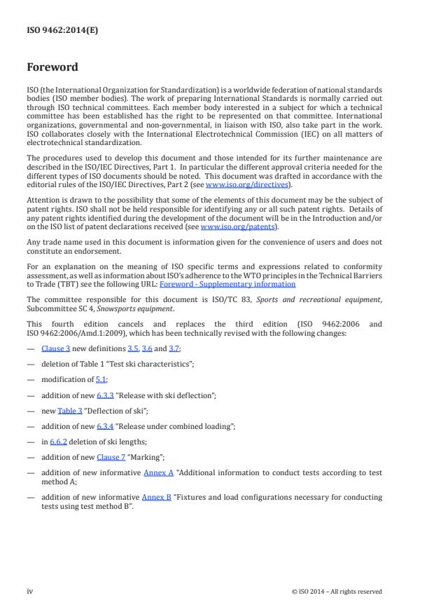 ISO 9462:2014 specifies the main characteristics of ski-bindings and describes, as an example, the test methods A and B. ISO 9462:2014 applies to ski-bindings for alpine skiing for children, juniors, and adults.