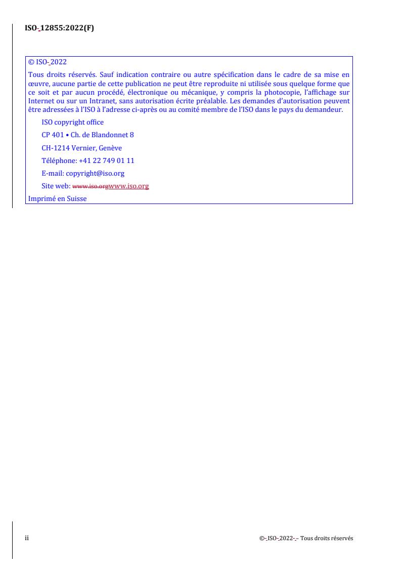 Cette troisième édition annule et remplace la deuxième édition (ISO 12855:2015), qui a fait l'objet