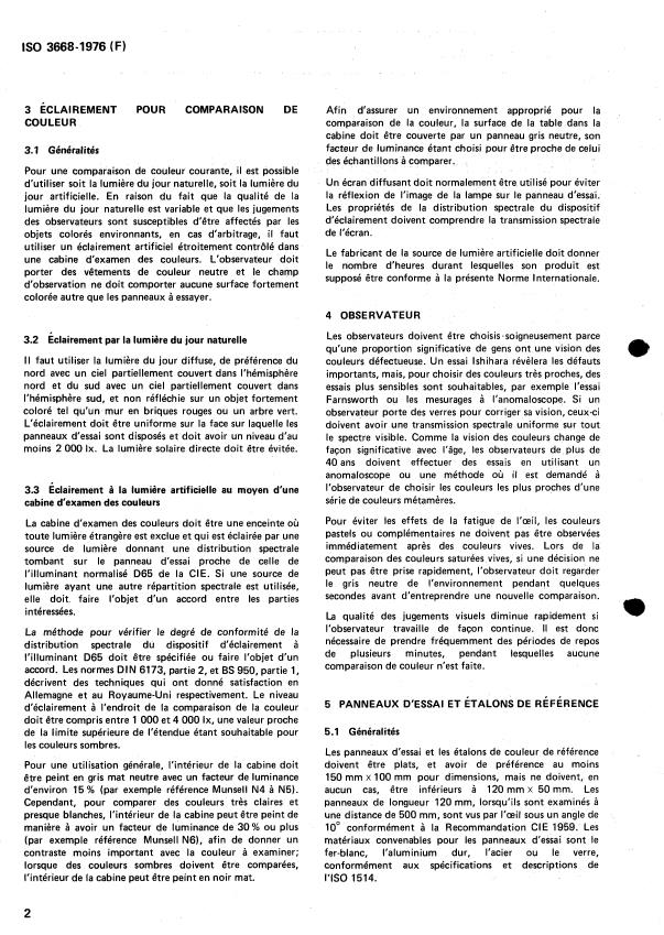 ISO 3668:1976 is a standard published by the International Organization for Standardization (ISO). Its full title is "Paints and varnishes — Visual comparison of the colour of paints". This standard covers: Paints and varnishes — Visual comparison of the colour of paints