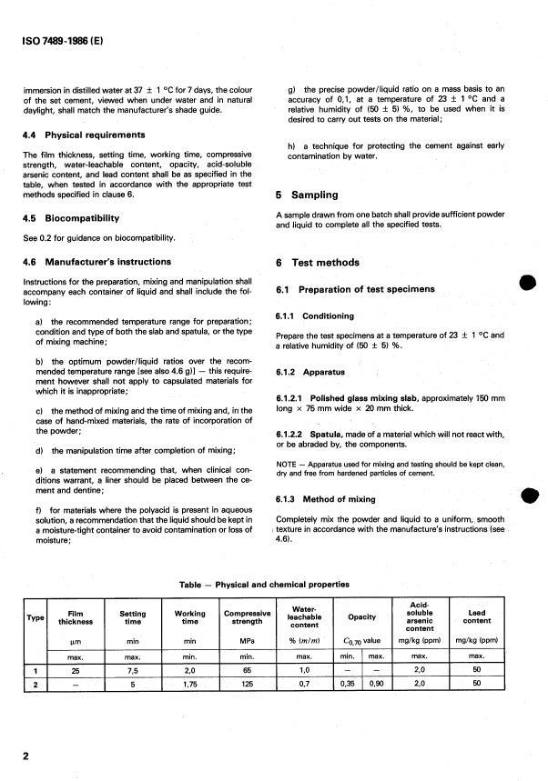 ISO 7489:1986 is a standard published by the International Organization for Standardization (ISO). Its full title is "Dental glass polyalkenoate cements". This standard covers: Dental glass polyalkenoate cements