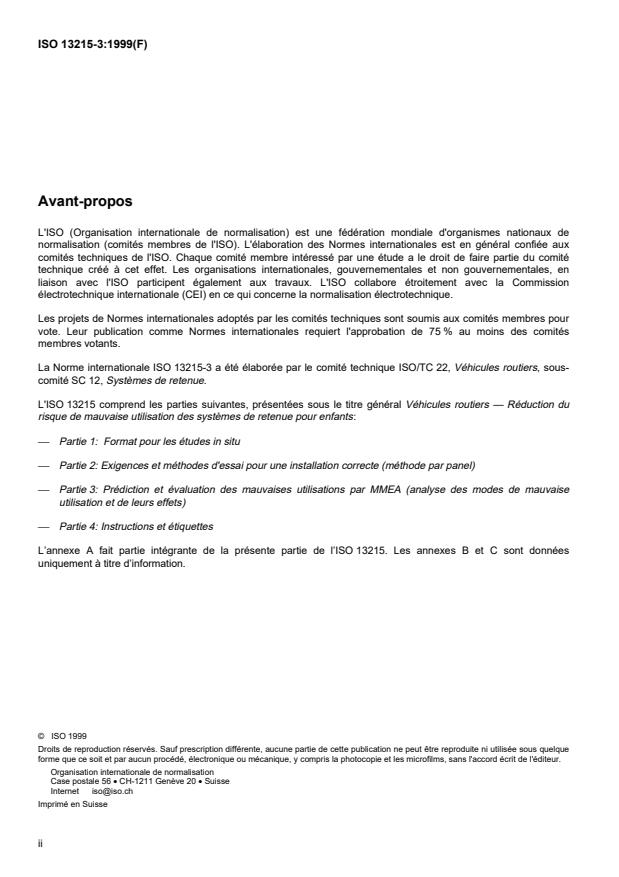 ISO 13215-3:1999 - Road vehicles -- Reduction of misuse risk of child restraint systems