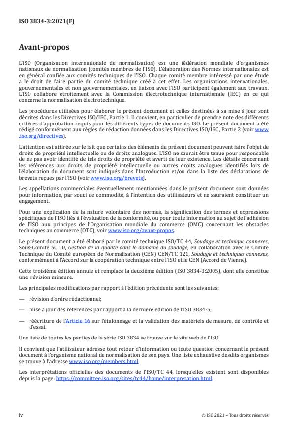 Cette troisième édition annule et remplace la deuxième édition (ISO 3834-3:2005), dont elle constitue