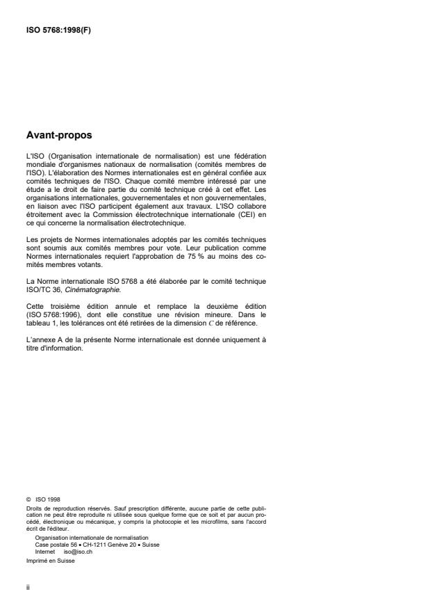 By establishing these uniform specifications, ISO 5768:1998 facilitates standardized workflow in film production, post-production, and archival processes, enhancing compatibility across various motion-picture technologies.