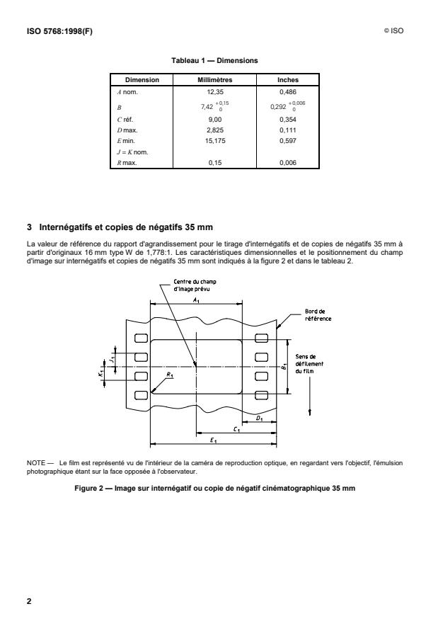ISO 5768:1998 - Cinématographie -- Champ d'image enregistré par caméra type W sur film cinématographique 16 mm -- Position et dimensions