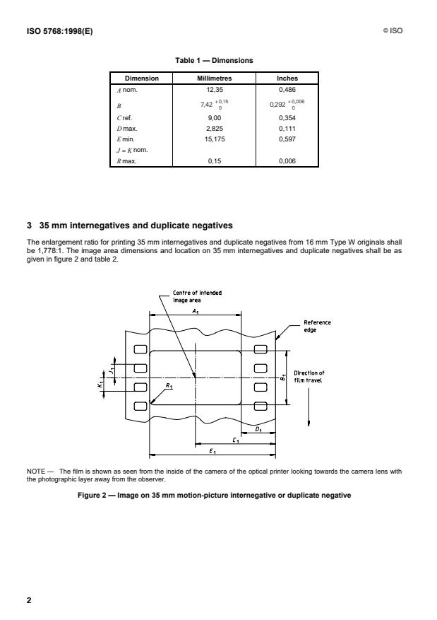 ISO 5768:1998 is an international standard developed by the International Organization for Standardization (ISO) that defines the precise position and dimensions of the image area produced by the camera aperture Type W on 16 mm motion-picture film. The standard focuses on the image intended for enlargement to non-anamorphic 35 mm motion-picture film with an aspect ratio of 1.66:1 or greater. It aims to provide consistency and accuracy in cinematographic film production and optical printing, ensuring compatible image sizes when enlarging 16 mm film images to 35 mm formats.