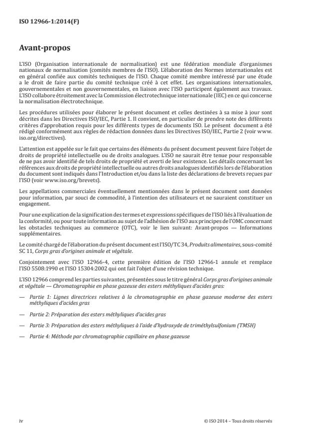 ISO 12966-1:2014 - Corps gras d'origines animale et végétale -- Chromatographie en phase gazeuse des esters méthyliques d'acides gras