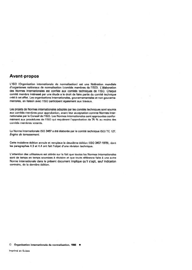 ISO 3457:1986 is a standard published by the International Organization for Standardization (ISO). Its full title is "Earth-moving machinery — Guards and shields — Definitions and specifications". This standard covers: Specifies the characteristics of different guards and shields to protect personnel from accidental hazards which may arise during operation and servicing of earth-moving machines due to mechanical, thermal, chemical and electrical causes. Covers both rubber-tyred and track-type off-highway earth-moving machinery of all sizes.