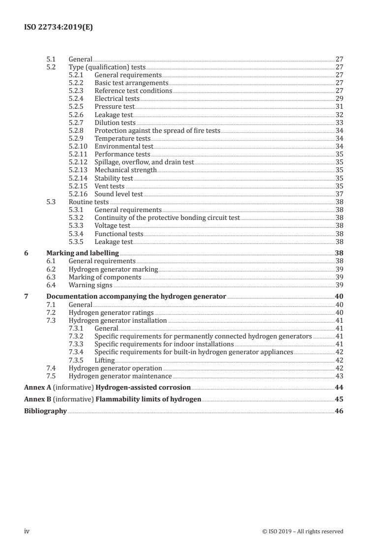ISO 22734:2019 organizes technical requirements and tests to ensure safe, reliable hydrogen generation. Main areas include: