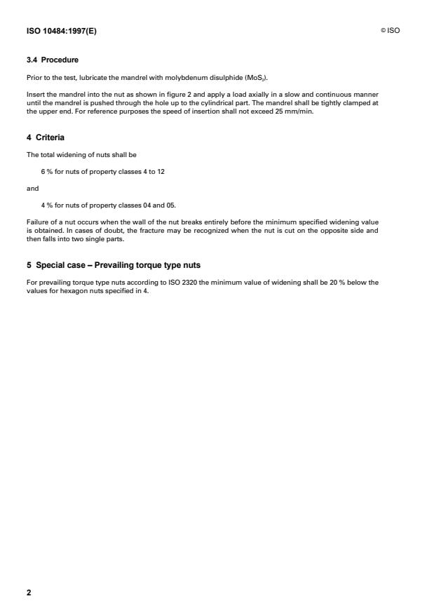 ISO 10484:1997 is a standard published by the International Organization for Standardization (ISO). Its full title is "Widening test on nuts". This standard covers: Widening test on nuts