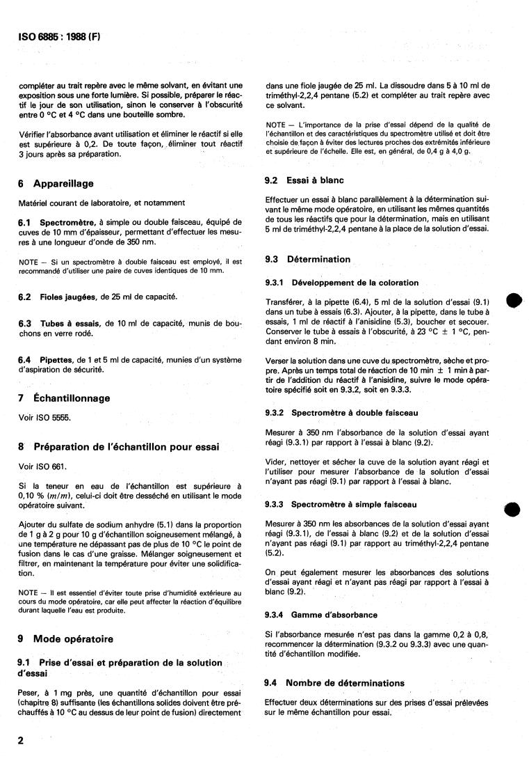 ISO 6885:1988 - Animal and vegetable fats and oils — Determination of anisidine value Released:7/7/1988