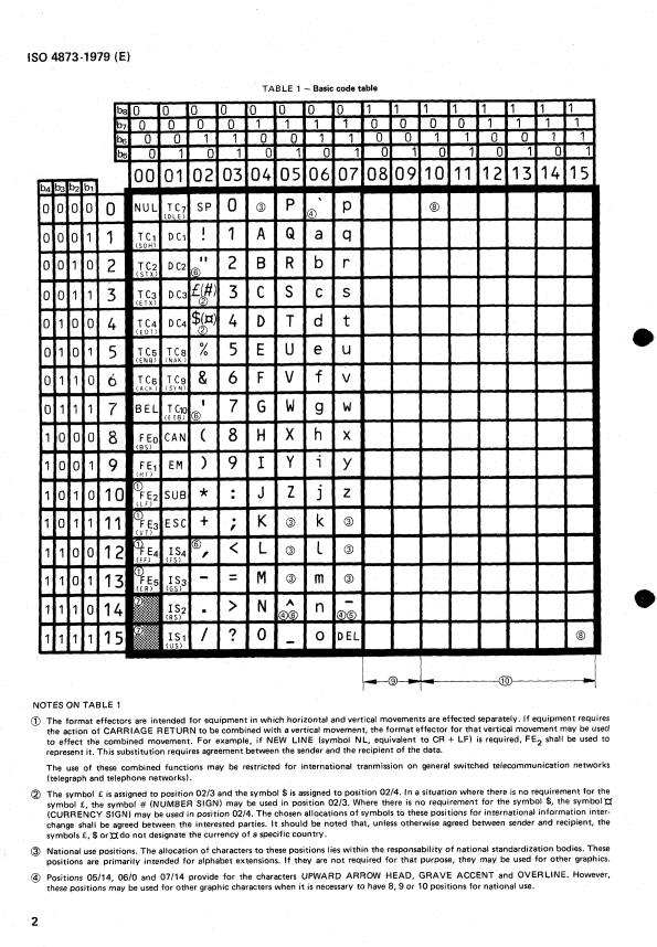 ISO 4873:1979 - Information processing — 8- bit coded character set for information interchange Released:2/1/1979
