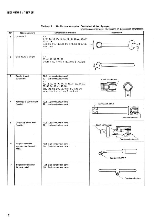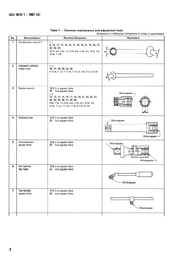 - combination wrenches, engineer’s (box/open) wrenches and socket wrenches (metric and inch nominal dimensions)