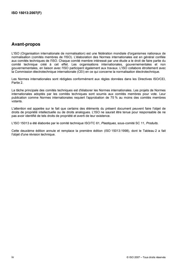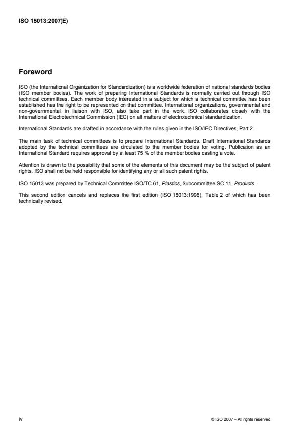 L'ISO 15013 a été élaborée par le comité technique ISO/TC 61, Plastiques, sous-comité SC 11, Produits.