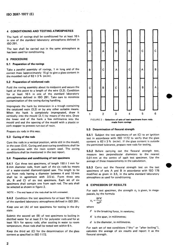ISO 3597:1977 - Textile glass reinforced plastics -- Composites in the form of rods made from textile glass rovings -- Determination of flexural (cross-breaking) strength