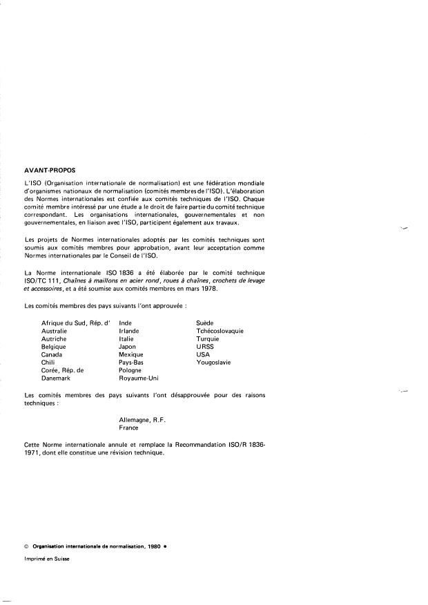 ISO 1836:1980 - Chaînes de levage a maillons courts, classe M (4), calibrées, pour palans a chaînes et autres appareils de levage