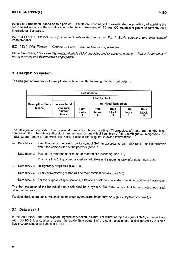 1 .l This part of IS0 4894 establishes a system of designation for styrene/acrylonitrile thermoplastic material,