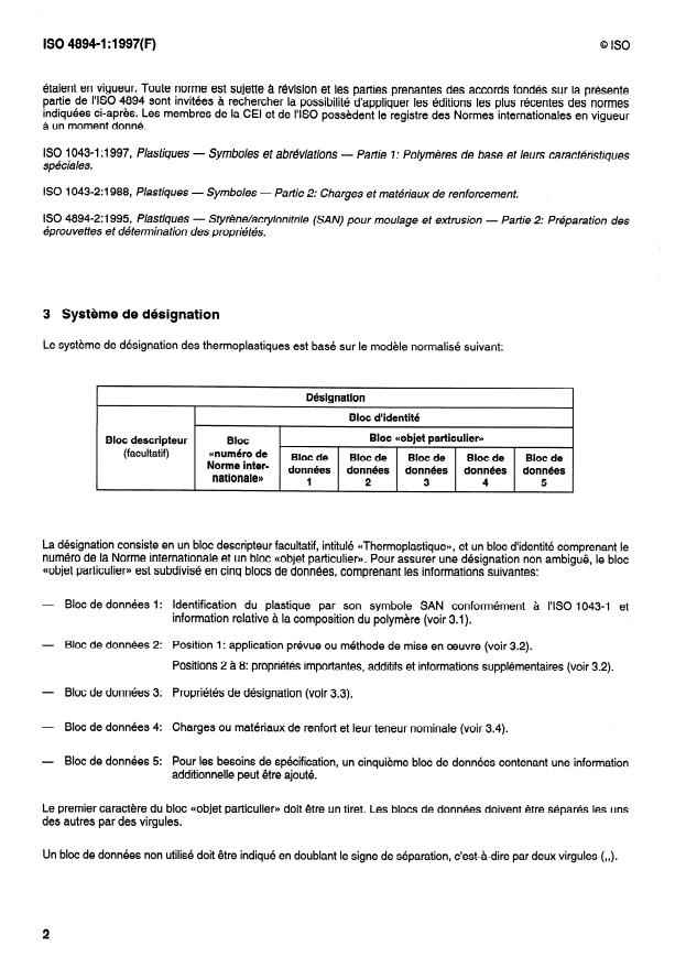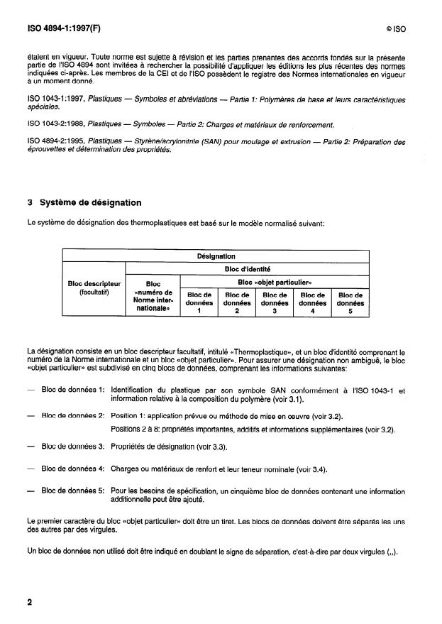 numéro de la Norme internationale et un bloc ((objet particulier>>. Pour assurer une désignation non ambiguë, le bloc