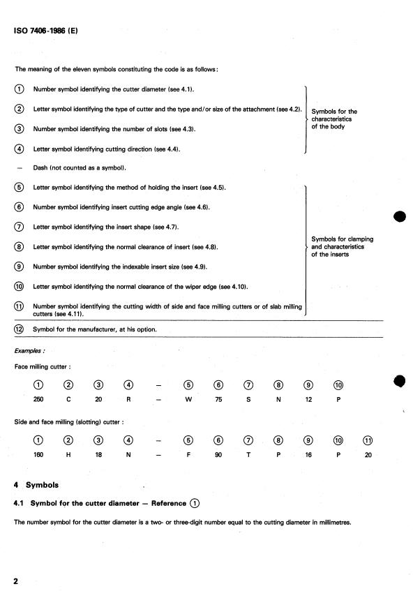 ISO 7406:1986 is a standard published by the International Organization for Standardization (ISO). Its full title is "Bore type milling cutters for indexable inserts — Designation". This standard covers: Bore type milling cutters for indexable inserts — Designation