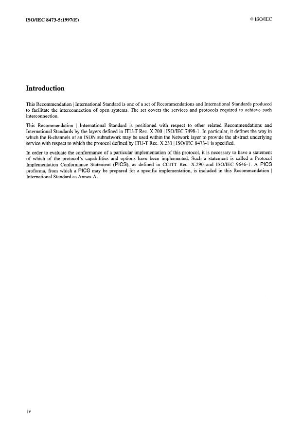 Keywords: ISO/IEC 8473-5, CLNP, ISDN B-channel, SNDCF, connectionless-mode network service, PICS proforma.