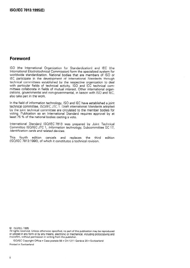 International Standard lSO/IEC 7813 was prepared by Joint Technical